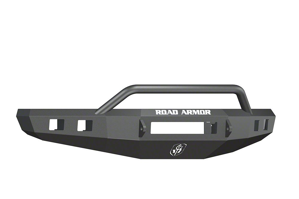 Made of Steel. Built to tackle rough terrains, Road Armor created this front bumper using 3/16-inch, heavy-duty steel. With its steel construction, your bumper won’t easily sustain dents or abrasions due to its high resistance to impacts. Moreover, this bumper is painted with a satin black finish to protect it from rust and corrosion.