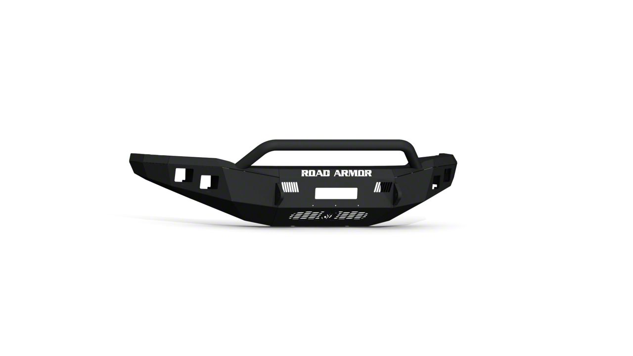 Crafted from Steel. Road Armor manufactured this front bumper using heavy-duty steel for enhanced strength and quality. Plus, this bumper is coated with a satin black finish to prevent the bumper from rusting.