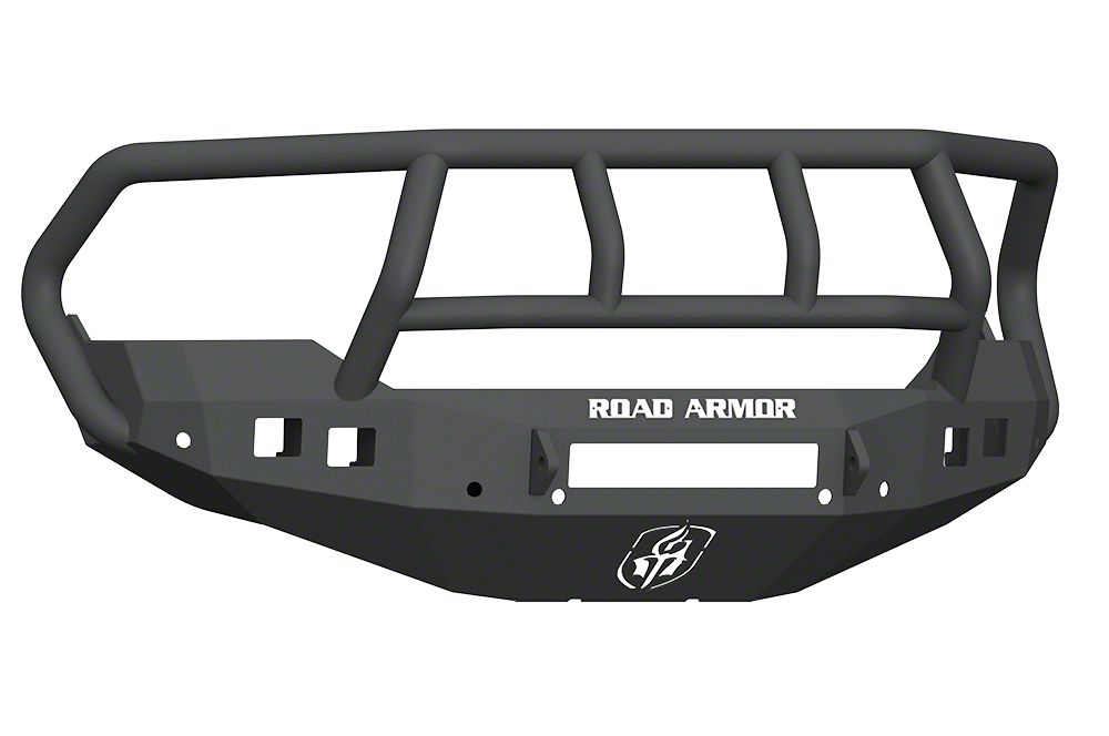 Front Bumper by Road Armor. The Road Armor Stealth Non-Winch Front Bumper with Titan II Guard - Satin Black is one of the off-road's most versatile performers. It protects your front end with a precision brake-formed, 3/16 inch CNC laser cut, heavy-duty steel construction along with 1/4 inch gusseting and internal bracketry for extra support.