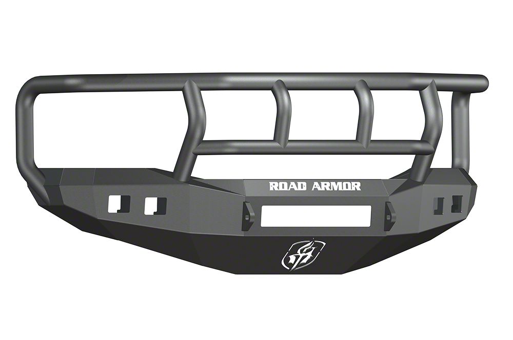 Protect Your Investment. The Road Armor Stealth Non-Winch Front Bumper with Titan II Guard & Square Light Mounts - Satin Black cuts through the toughest off-roading obstacles, including flying debris, with its high strength heavy-duty 3/16 inch, laser cut steel construction with a striking satin black, 5-stage powder-coated finish.