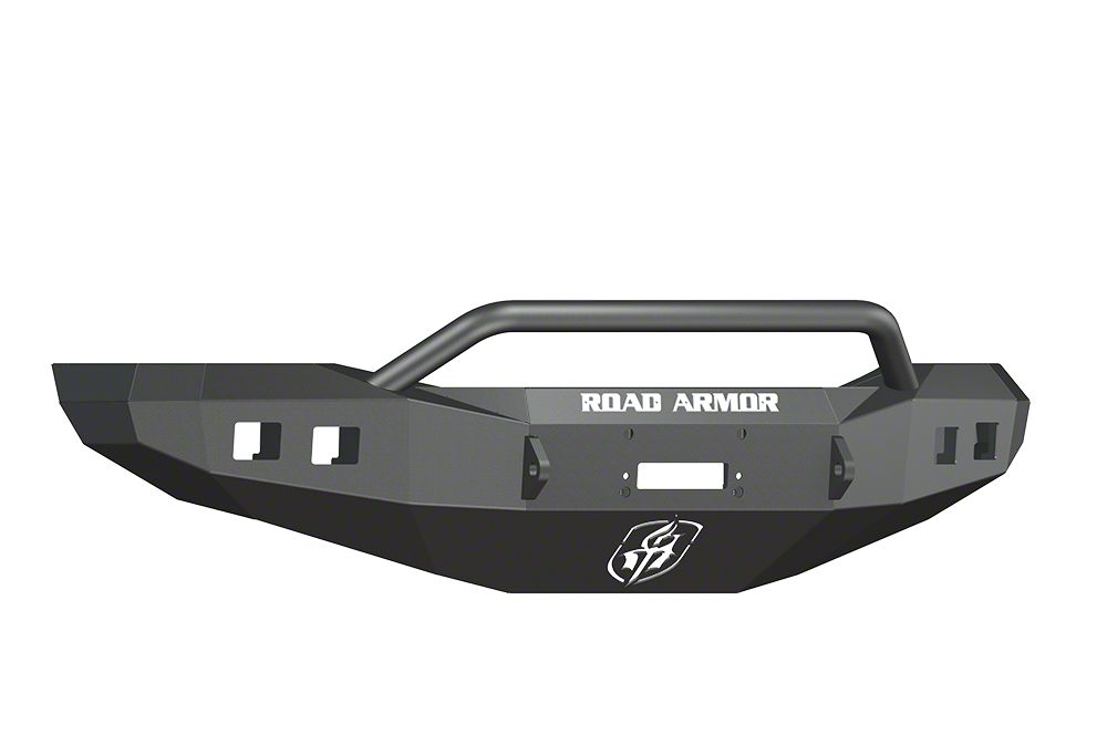 Everything You Need & Want. The Road Armor Stealth Winch Front Bumper w/ Pre-Runner Guard & Square Light Mounts - Satin Black - will give your RAM a rugged aggressive look and protect it from anything that gets in the way. It features an integrated foot forward winch mount that will handle up to a 12,000 lb. winch, a Pre-Runner guard, and fully welded shackles. Reliably made in the USA, this bumper is built to meet all of your on and off-road needs.