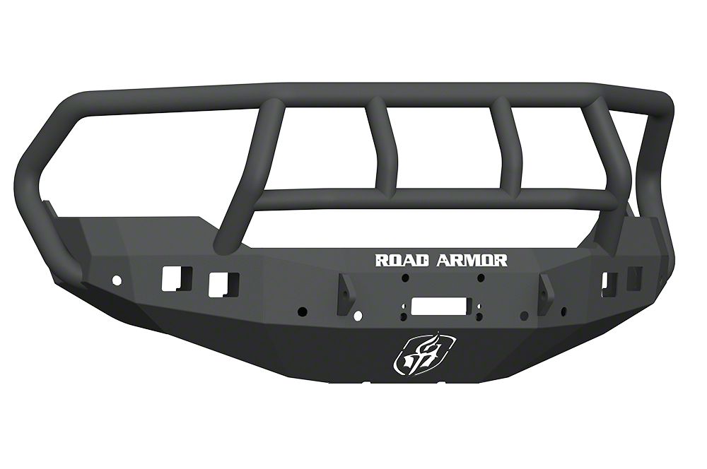 Withstand Hard Hits. The Road Armor Stealth Winch Front Bumper with Titan II Guard - Satin Black delivers outstanding front-end protection on the off-road. It is constructed using 3/16 inch CNC laser cut, heavy-duty steel with a direct-bolt on design. It also has a 5-stage satin black powder-coat finished for rust and abrasion resistance.