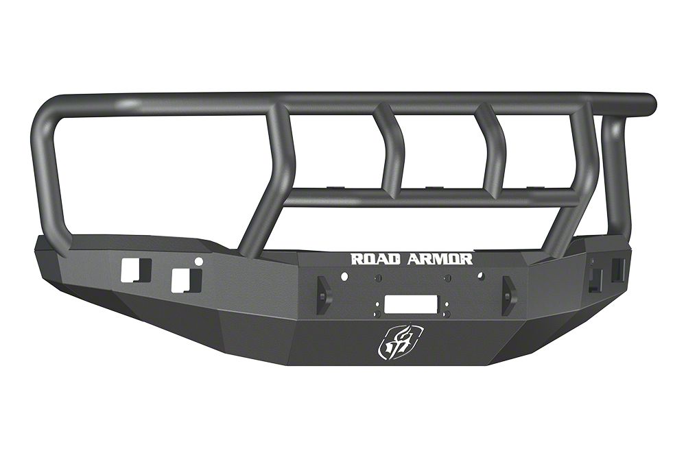 Superior Vehicle Protection. Effectively protect the vehicle rear on your Sierra 1500 with the Road Armor Stealth Winch Front Bumper with Titan II Guard; Satin Black. You’ll love the sleek and aggressive style of this front bumper. It includes a foot forward winch mount.
