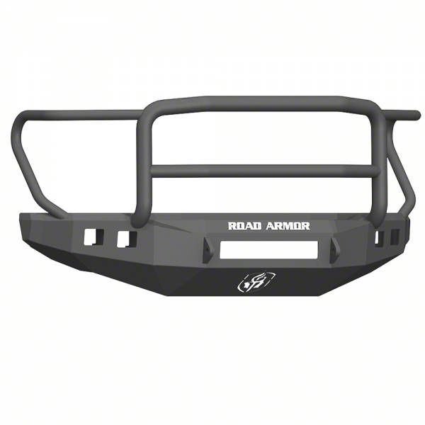Heavy-Duty Full Width Bumper. Add a rugged aggressive look, as well as functionality, to your F-250 with this Road Armor Stealth Non-Winch Front Bumper with Lonestar Guard; Wide Flare; Textured Black. Designed to guard your vehicle's front end from the grueling elements of the off-road, it is constructed from 3/16-inch steel with a 5-stage black powder-coat finish for added corrosion resistance.