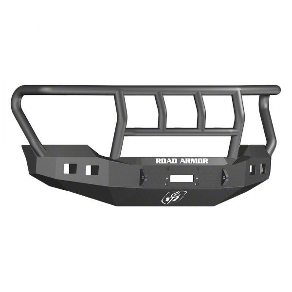 Improved Front Protection. Road Armor Stealth Winch Front Bumper with Titan II Guard; Standard Flare are rugged, and loaded with added utility. The Original Faceted Stealth Series Steel Bumper in our Standard Premium 5-stage Satin Black powder-coat finish was the pioneer of the aftermarket bumper segment. Specifically designed to follow, compliment, and accentuate the body lines of your vehicle.