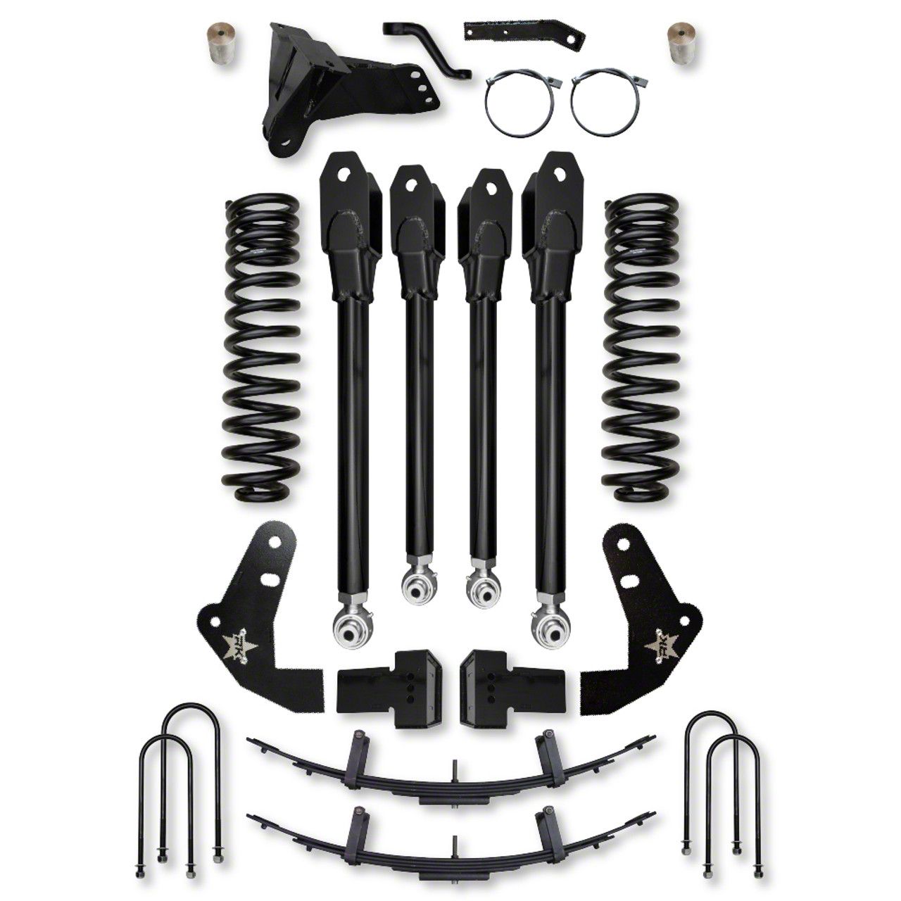 The RK Suspension 4.0" Lift Height X-Factor System for the Ford Super Duty is expertly engineered to elevate both ride quality and performance, making it the ultimate upgrade for your everyday workhorse or adventure vehicle. Every component is precision-crafted in-house to optimize factory geometry, ensuring enhanced off-road stability for those who crave the thrill of the trail. It all starts with the tuned multi rate coils. Then we enhance them with our 4 Link geometry that provides improved axle control, removes suspension bind found in conventional radius arm systems, and allows for much smoother articulation off road. The rear mini pack enhances and smooths out the OEM leaf pack for yet again, smoother on high ride and better off road performance. But we also understand that your truck isn’t just for play—it’s a workhorse. Whether you're navigating city streets, conquering rugged terrain, or towing heavy loads, RK Suspension delivers the reliability, strength, and performance needed to tackle any challenge with confidence!