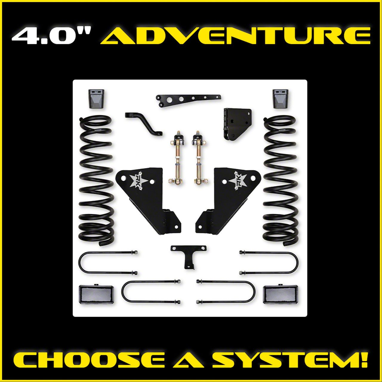 The RK Suspension 4.0 Inch Adventure System for RAM 3500HD is specifically designed to improve ride quality and performance of your everyday work/adventure vehicle. Each and every component to the suspension system is precision engineered in-house to improve factory geometry and increase off-road stability, if that is what you enjoy. Meanwhile, we know that as a truck owner, it has to perform at work, whether the task is street, trail or tow, RK Suspension will help you complete the task, complete the trail or get the job done!
