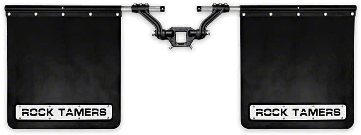 Design. This Rock Tamers 2.50-Inch Hub Mudflap System's flexibility and simplicity of removal are two of its main advantages. The mudflaps' width and angle are easily adjustable to fit into your vehicle precisely. Plus, they're simple and easy to take off if you decide you don't need them for that particular journey.