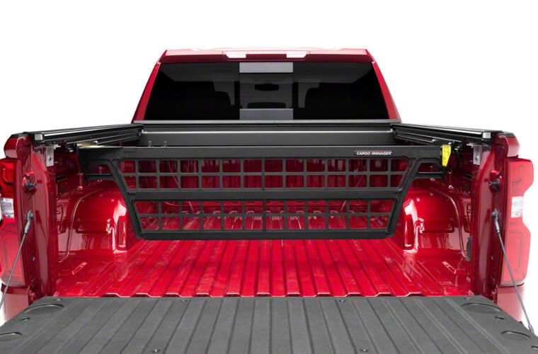 Robust Design and Functionality. Crafted with precision and durability in mind, the Cargo Manager boasts a robust construction that promises longevity. Its operation is simplified with a single control point on the driver’s side, featuring an easy-to-squeeze lever for quick unlocking and repositioning. The divider glides effortlessly along the truck bed, locking securely into place as needed. With the Cargo Manager, secure and efficient cargo management is now within easy reach.