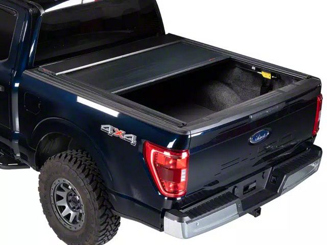 Description. The Roll-N-Lock E-SERIES XTâ„¢ combines the electric-powered E-Series retractable truck bed cover with our T-slot integrated MaxTrak System that allows for unique customization to your truck bed to meet your individual needs. The E-Series XT retractable truck bed cover offers quick and easy operation with reinforced durability and added protection. With a push of a button, this cover automatically opens and closes with its commercial-grade electric motor and convenient key fob. What does that mean for you? Hands-free access to your bed and gear in the matter of seconds. Make carrying tall gear easier as the E-XT can lock anywhere along your truck bed to suit your unique hauling needs at every turn. Added perk? The E-XT retractable truck bed cover is so intuitive; it automatically stops if it senses objects in the way. The durable, all-aluminum cover retracts into a very compact canister at the cab of your truck to preserve and protect your precious cargo space.