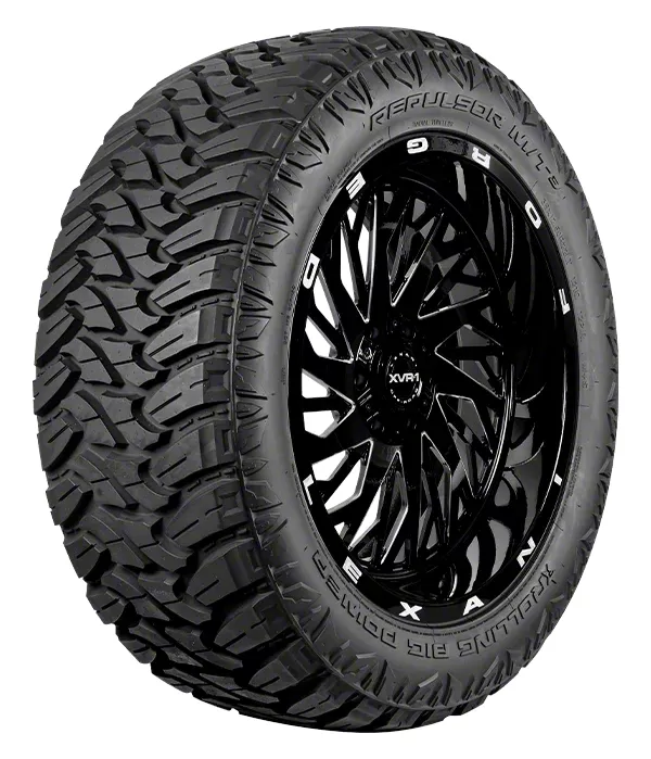 Get the Best of Both Worlds with a Rugged-Terrain Tire. The Rolling Big Power Tires Repulsor R/T Tire is designed for drivers who need a tire that performs on the highway while delivering off-road capability. With an aggressive tread pattern, this tire grips dirt, sand, and gravel with ease while ensuring stability on paved roads. Its deep grooves enhance traction and self-cleaning properties.