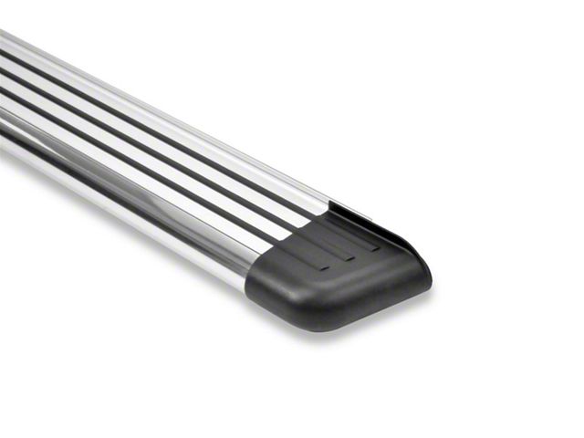 Construction and Appearance. Built from aircraft-grade aluminum, the Romik RB2-T Running Boards combine structural integrity with a lightweight profile. Their polished chrome finish is complemented by matte black end caps, delivering a bold, contemporary contrast. The boards embody a classic European style, making them a refined and durable addition to any modern truck.