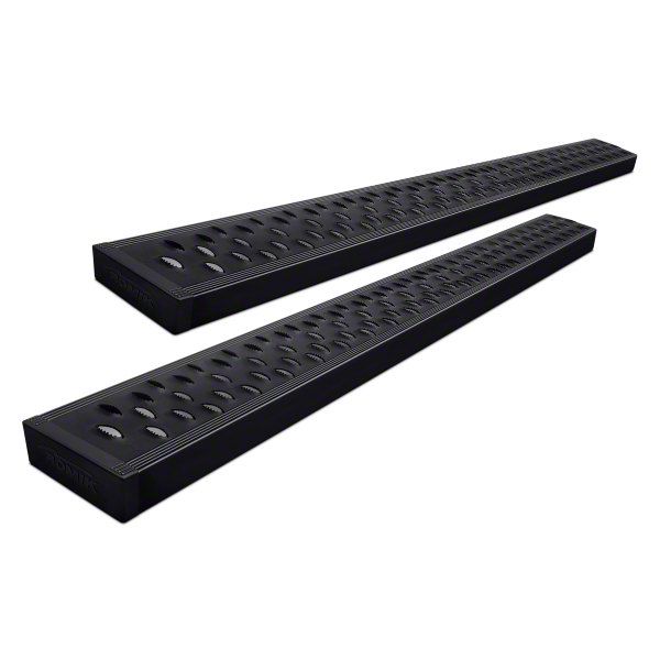 Robust Utility. The Romik RPD-T DRP Running Boards offer an aggressive rough step feature and modern European styling. They provide a substantial 6-inch step area designed to support up to 500 pounds, making them a durable and practical addition to your RAM 1500.