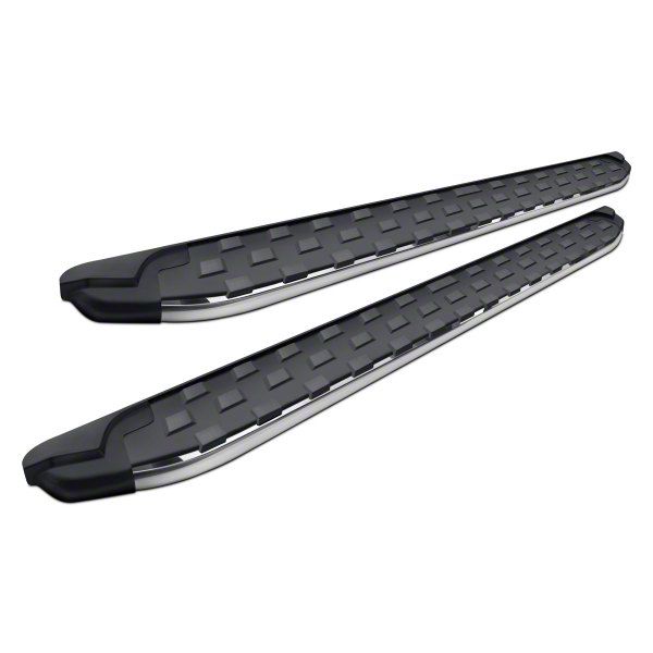 Exceptionally Durable. Crafted from premium aircraft-quality aluminum extrusion, they are not only lightweight but also exceptionally durable. The black end caps feature a non-skid surface, ensuring safe and secure footing for you and your passengers. With safety and style in mind, the Romik REC Running Boards are the perfect addition to set your vehicle apart from the crowd. Elevate your vehicle's aesthetics and practicality with the Romik REC Running Boards, and make a statement on the road while enjoying added convenience.