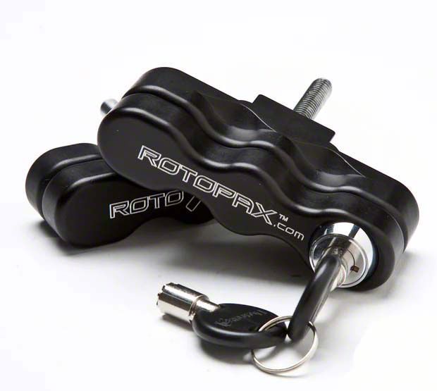 Secure Locking Solution for Rotopax Mounts. The Rotopax Locking T-Handle provides added security for your Rotopax fuel or storage containers. With a matte black finish, this locking handle is crafted from durable aluminum and is designed to fit seamlessly into existing Rotopax mounts. It ensures that your Rotopax containers are securely locked in place, protecting them from theft during your outdoor adventures.