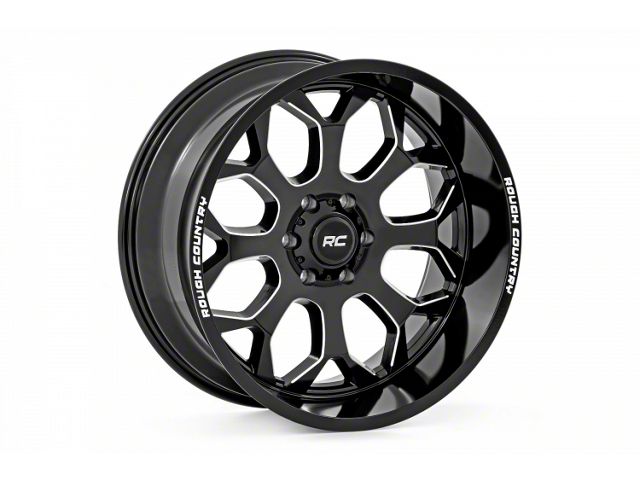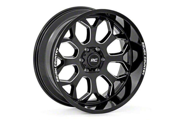 Rough Country One-Piece Series 96 Gloss Black Milled 8-Lug Wheel; 22x10; -19mm Offset - Experience the sleek elegance of the Rough Country wheel. Its matte black finish adds a touch of sophistication to your vehicle, enhancing its overall appearance without compromising on durability. Perfect for a variety of vehicle styles, this wheel is a testament to the brand's commitment to quality and aesthetic excellence.