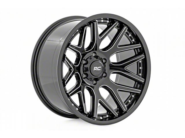 Rough Country One-Piece Series 95 Gloss Black Machined 8-Lug Wheel; 22x10; -2019mm Offset - Enhance your vehicle's style with the Rough Country wheel. This wheel's distinctive design and finish complement your vehicle's aesthetics, making a bold statement. It's crafted to accentuate the unique character of your car, emphasizing a premium and robust appeal.