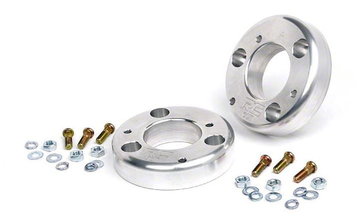 Get a Lifted and More Capable Truck. Raise your truck up quickly and easily to show off larger wheels or take on more difficult off-road tasks effectively with this rough Country 2" Leveling Strut Extensions set. The extensions fit right over your stock struts up front and make them 2" longer than before. It's simple to install and will give you the space to use larger wheels while offering increased ground clearance all the time. Add this set to your Ford F-150 and enjoy the enhanced versatility that it offers. It works best when paired with a rear leveling kit as well.