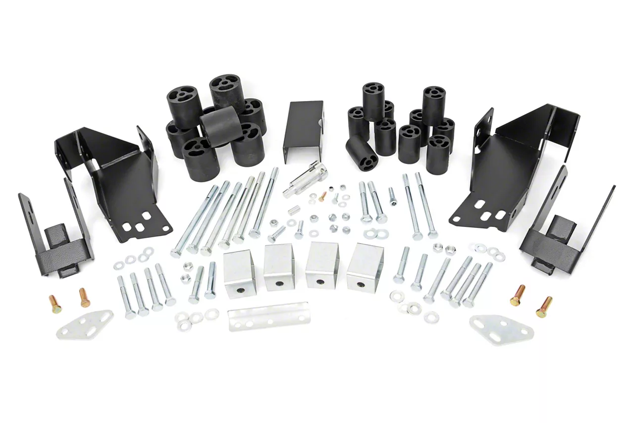Simple and Reasonably Priced Lift Solution. The Rough Country 3 in. Body Lift Kit is a simple and effective way to add some ground clearance to the Silverado. Made to a superior quality, the kit includes a steering extension kit and is designed to maintain optimum angles to keep the factory ride quality. Additionally, it comes with relocation brackets for the bumpers, ensuring a flush fit to the body and eliminating the unsightly bumper gap.