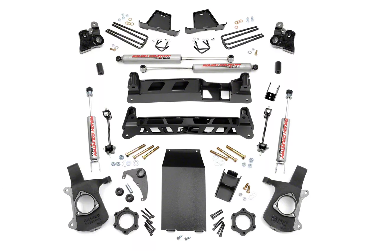 Cleanest 6 inch Lift Ever. Take things to the next level by installing this heavy-duty Rough Country 6-inch Suspension Lift Kit on your Chevrolet Silverado 1500. Redesigned for even better off-road performance, this all-inclusive kit is the perfect solution for the serious adventurer who wants to improve their stock suspension. From beefy lifted front knuckles to a set of premium N3 Series Shock Absorbers, this kit has got you covered all the way through.