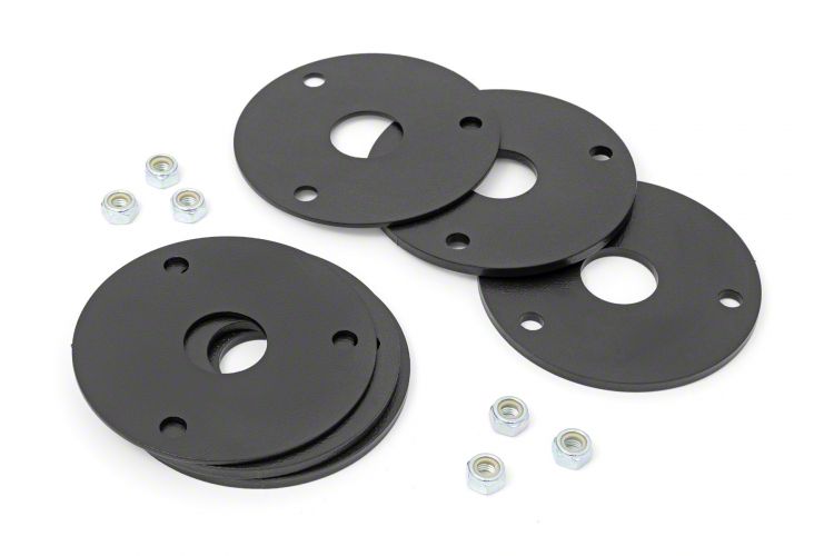 Quality Construction. Featuring laser-cut strut spacers with a durable powder-coated finish, the Rough Country 1-Inch Front Leveling Kit guarantees long-lasting performance and resistance to wear and tear. The direct bolt-on installation simplifies the process, and all necessary hardware is included for your convenience. Additionally, it is reversible to the stock height, allowing you to easily return to the original configuration if desired.