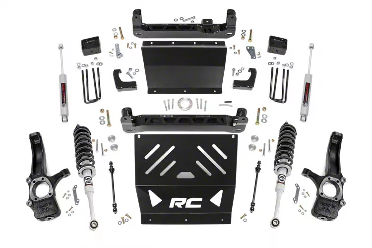 Comfortable Shock Suppression. The Rough Country 4-Inch Suspension Lift Kit with Premium N3 Shocks is the pinnacle of off-road technology. These state-of-the-art shocks and suspension components are designed to provide an incredibly smooth and comfortable ride, regardless of the surface. Your off-road adventures will feel like a walk in the park, as the N3 Shocks absorb bumps and uneven terrain with ease.
