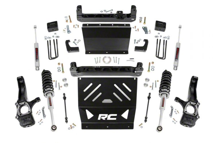Functional and Stylish. The Rough Country 6-Inch Suspension Lift Kit adheres to OE geometry, guaranteeing seamless integration with your vehicle while a touch of style and protection with its RC logo printed front skid.