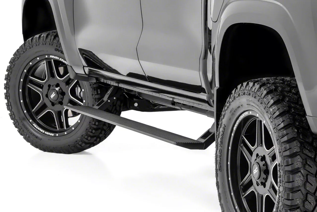 Power-Activated Running Boards for Easy Access and Style. The Rough Country Running Boards provide convenient, automatic access for 2015-2026 Colorado Crew Cab models. Designed with dual motors, these powered running boards automatically extend and retract, offering a smooth, illuminated step for improved ease and functionality.