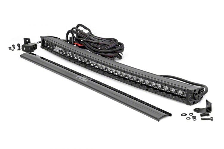 Rough Country 30-Inch Black Series Curved Single Row Cool White DRL LED Light Bar; Spot Beam (Universal; Some Adaptation May Be Required)