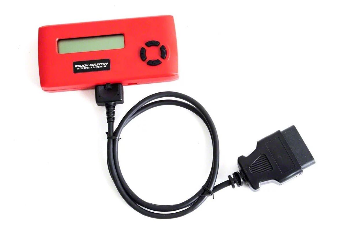 Designed for Accuracy. Your truck’s factory ECM needs to be updated when re-fitting your vehicle with larger tires. This Rough Country Speedometer Recalibration Tool does that for you quickly and easily. It updates your truck’s speedometer, so it can accurately track its speed using its actual height. It can also return the readouts to its factory settings when re-fitting your vehicle with factory tires.