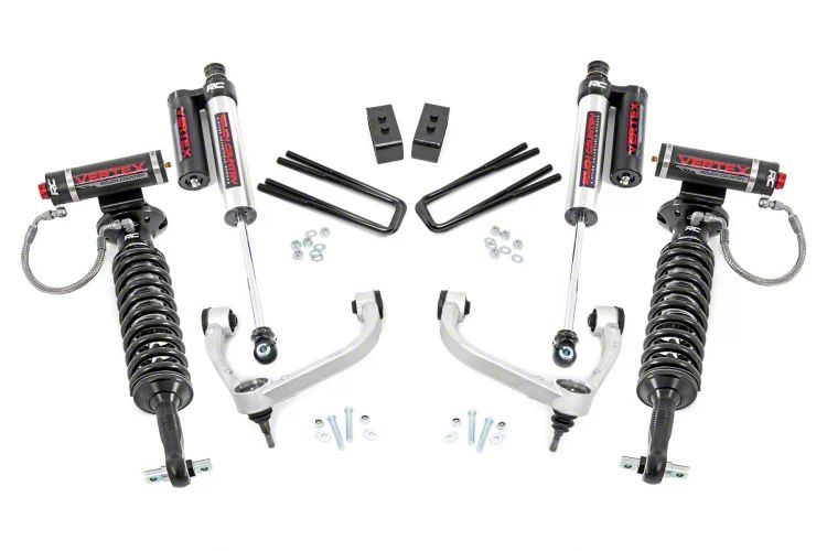 Reinforced Off-Roading Capacity. Boost your Ford F-150’s performance and stance by upgrading your suspension system to this Rough Country 3-Inch Bolt-On Arm Suspension Lift Kit with Adjustable Vertex Coil-Overs and Vertex Reservoir Shocks. This kit is engineered to increase your truck’s ground clearance, as well as ensure smoother off-roading and better handling. Using this kit allows you to accommodate larger tires for bolder off-roading capabilities.