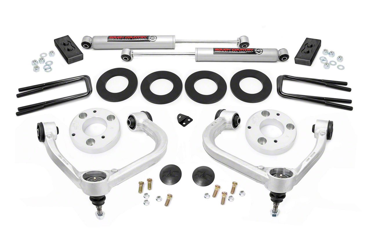 For a Suspension Boost. Give your F-150's suspension a boost with this Rough Country 3-Inch Bolt-On Upper Control Arm Suspension Lift Kit with Premium N3 Shocks. Combining high-quality upper control arms with smooth performing N3 shocks, this kit offers 3 inches of lift and superior suspension performance at an excellent price point.