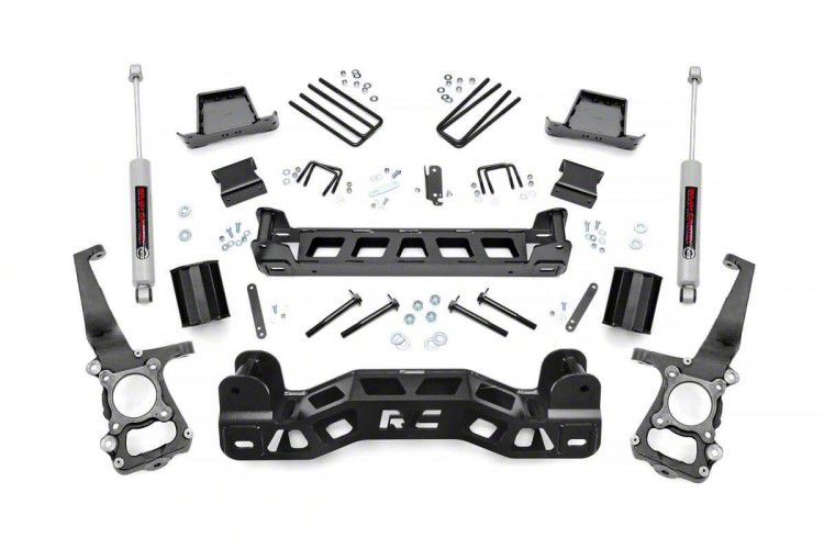 Exceptional Clearance and Handling Capability. Fortify your Ford truck’s suspension for extreme roads with this Rough Country 6-Inch Suspension Lift Kit with Premium N3 Shocks. It equips your vehicle with all the suspension components required that allow you to conquer rugged roads with remarkable stability, optimal clearance, and maximum control. This lift kit also effectively levels the front of your truck with its rear, giving it a more formidable stance and superior handling qualities throughout your adventure.