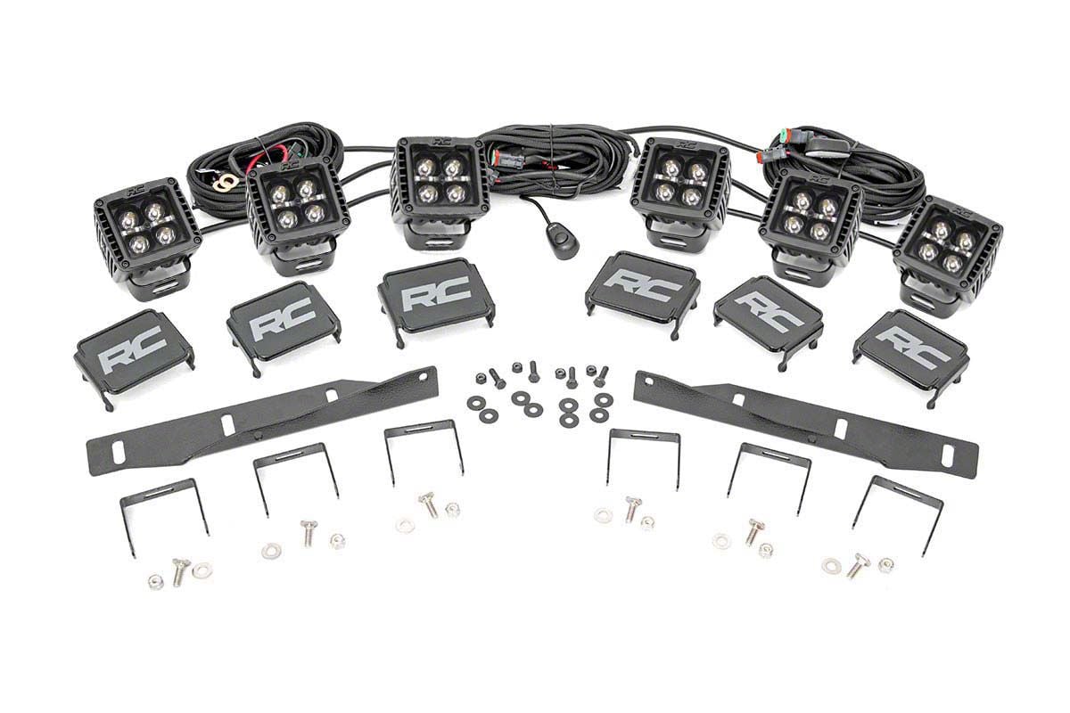 Aggressive Lighting Solution. Pierce the night with the Rough Country Black Series Triple LED Fog Light Kit with White DRL on your Ford truck. This LED lighting solution features 3 powerful pairs of LED cubes that are mounted using sturdy light mounts for unmatched security. With these LED fog lights on your truck, you can conquer the night with supreme confidence in your safety.