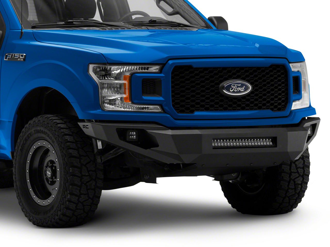 Bolder Off-Road Style and Protection. Tailored for your rugged Ford F-150, this Rough Country High Clearance LED Front Bumper is an aggressive upgrade serving as an excellent front armor. It features a bumper with a full-width configuration, a skid plate, and auxiliary lights that enable your truck to climb large obstacles or crawl over huge rocks with ease and confidence. Furthermore, it is designed to provide you with optimum approach angles and maximum tire clearance for bolder off-roading.