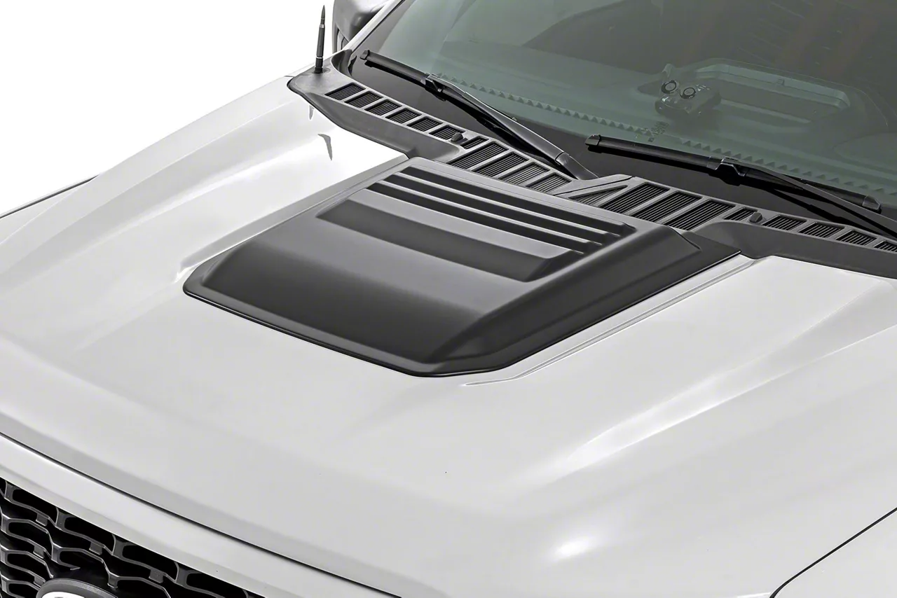 Bold Styling Upgrade. The Rough Country Hood Scoop delivers an aggressive, rugged aesthetic to your F-150, enhancing its appearance without compromising performance. This hood scoop is a perfect addition for those seeking a sporty, custom look.
