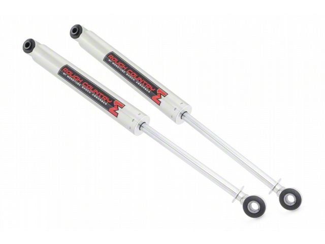 Description. Whether you're tackling tough terrain or smooth city streets, Rough Country's Nitrogen-charged M1 Monotube Shock Absorber leads the way, delivering impeccable ride quality and performance mile after mile. Rough Country's Monotube M1 Shocks feature an internal floating piston design that keeps the shock oil and high-pressure nitrogen separate. The result is a lightning-fast reaction with no cavitation - just unbridled vibration damping at each and every obstacle. The M1 Monotube Shock Absorber is more than an upgrade - it's a true performance shock. Each shock features a steel body that is brushed and galvanized boasting a passivation sealing technology that is sure to withstand the elements. The internal 46mm digressive piston offers countless years of durability. The M1 is designed to be mounted body-up for a more interesting look on the vehicle.