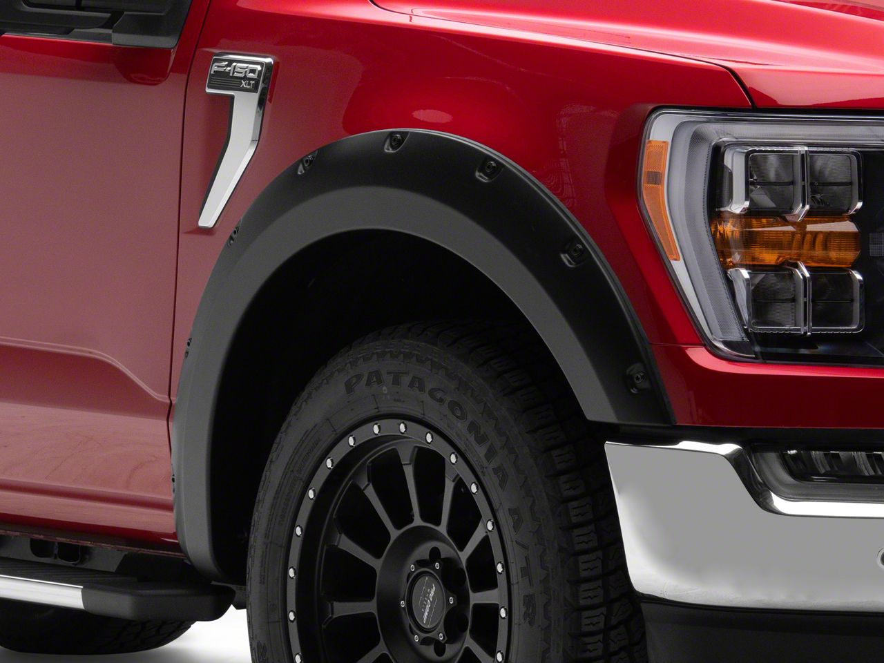 Extra Tire Coverage. The Rough Country Pocket Fender Flares with flat black finish are engineered to provide a rugged, off-road look and additional tire coverage to your vehicle. These pocket fender flares are designed to provide extra tire coverage for wider wheels and tires, which helps protect your vehicle from dirt, mud, and debris. The flat black finish adds a sleek and stylish look to your Ford F-150, while the pocket-style design adds a rugged, off-road look.