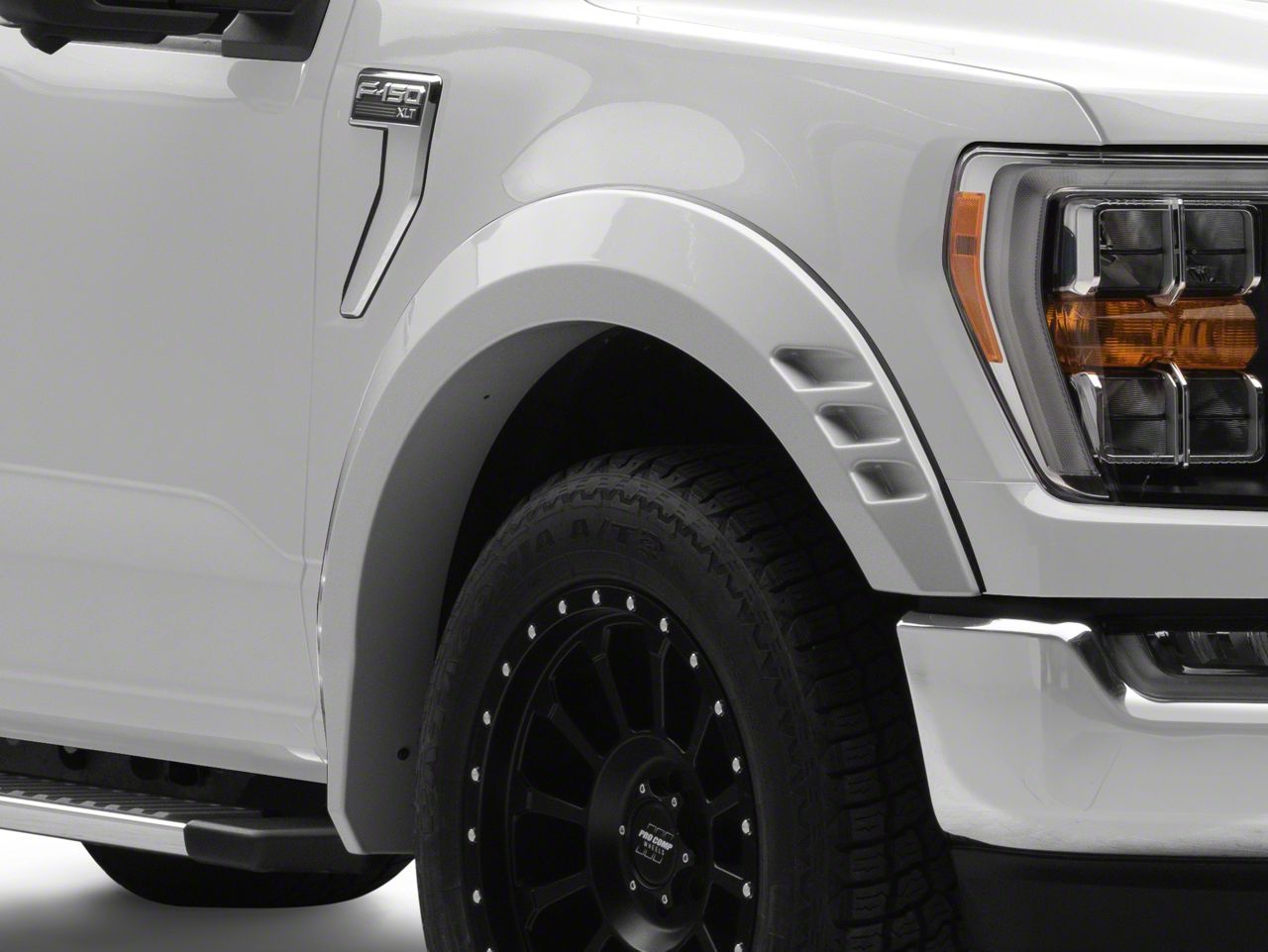 Stylish Protection for Your Truck. The Rough Country SF1 Fender Flares are designed to enhance the look of your 2021-2026 Ford F-150 while providing extra tire coverage for off-road protection. With a bold Space White finish, these flares deliver a custom, OEM-inspired appearance that complements your truck's rugged stance.