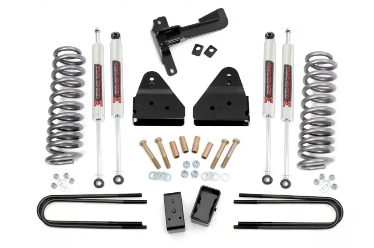 Factory-Like Ride. Made for the 4WD 6.7L Powerstroke Ford F-250 Super Duty, this Rough Country Suspension Lift Kit comes in a matte black and polished metal finish. Built to give your ride a lift of 3-inches, this kit includes lifted coil springs, radius arm drop brackets, and M1 shocks that retain your ride’s factory-like ride quality.