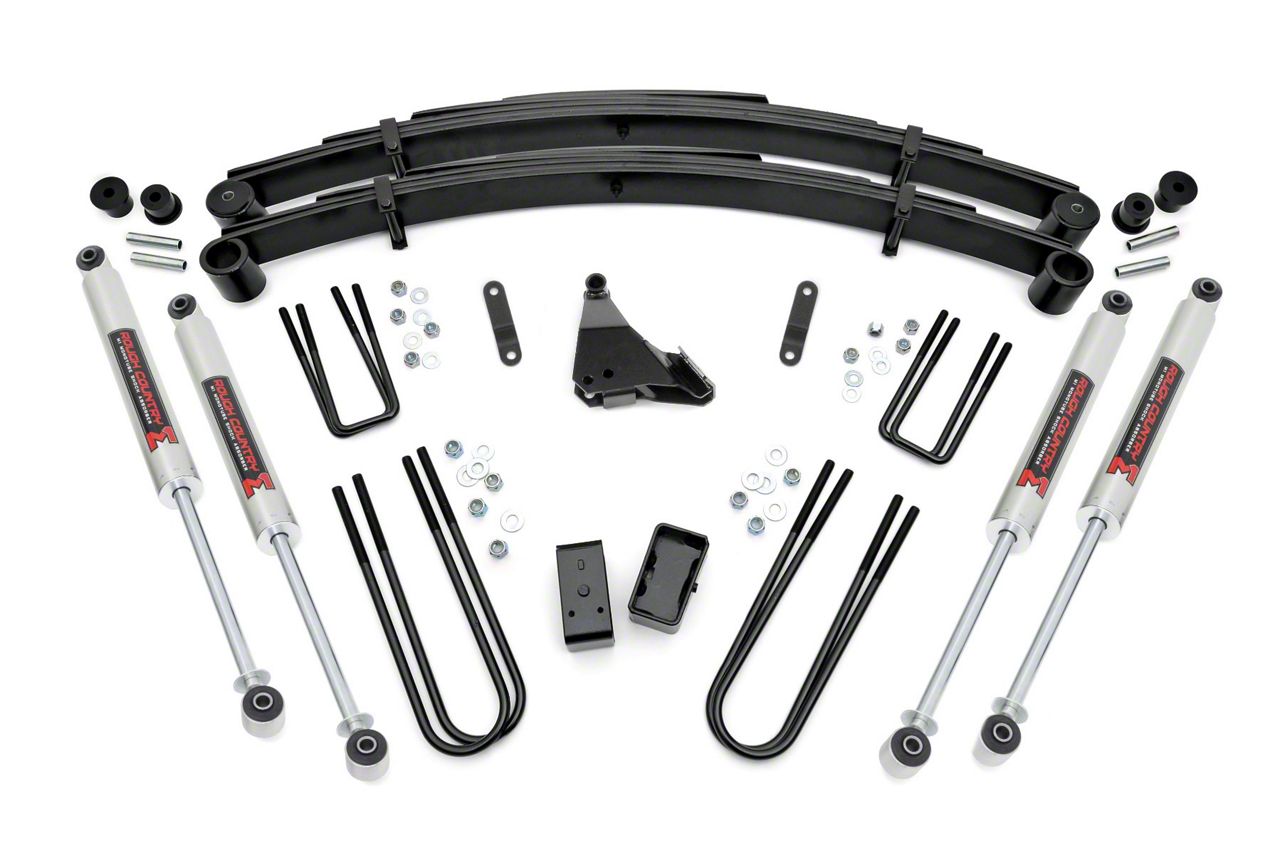 Give your 99-04 Ford Super Duty an impressive upgrade, front to back with Rough Country's 4" Ford Suspension Lift Kit! This easy-to-install lift kit raises the front of your vehicle to be equal height with the rear for a leveled, better-than-stock look that gives an improved ride height and more aggressive appearance.This kit features a set of front, lifted leaf springs allowing you gain additional ride height without sacrificing ride quality or performance. A set of sway bar drop brackets and track bar bracket are provided to keep everything at optimum angles for a factory-like ride, even after lifting.A set of Rough Country's premium N3 shocks are also included. These fine tuned 10-stage variable high-pressure Nitrogen charged shocks offer a fantastic blend of off-road action and smooth highway ride quality. With a durable 18mm spring-loaded piston rod and faster-cooling 54mm shock body.Get the wheels you want! Rough Country's 4" 99-04 Ford Suspension Lift Kit comes with everything you need to fit up to a 35" tire with proper wheel backspacing.Best of all, Rough Country's 4" Ford Suspension Lift Kit is backed by our Lifetime Replacement Warranty.