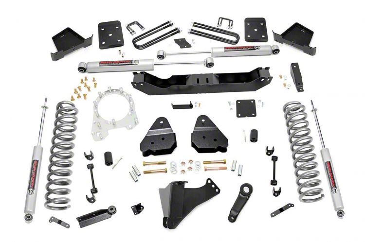 Premium Suspension Upgrade. The Rough Country Suspension Lift Kit delivers 4.5 inches of lift for enhanced ground clearance and off-road performance. Designed for 2017-2022 4WD 6.7L Powerstroke Ford F-250 Super Duty with 4-inch rear axle models, it maintains the stock ride quality while optimizing suspension geometry for reliable handling both on and off the road.