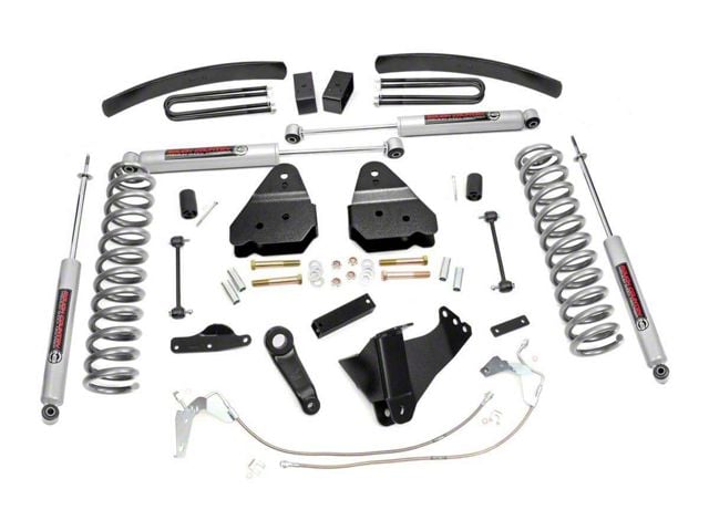 6-Inch Suspension Lift For Maximum Capability. The Rough Country 6-Inch Suspension Lift Kit With Add-A-Leaf And Premium N3 Shocks provides an aggressive new look and significantly boosts off-road performance. Designed to level the front and rear of your Ford F-250 Super Duty, it increases ground clearance, allows for up to 35-inch tires, and ensures a smooth highway ride without sacrificing functionality.