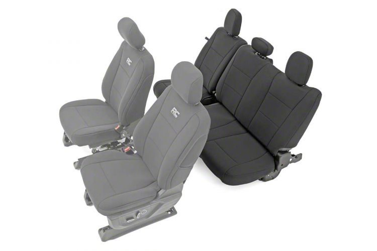 Design. Neoprene rear seat covers by Rough Country are not only economically protective but also cozy to sit on. You won't have to sacrifice comfort for protection because of the supple and smooth neoprene material, which makes your rides more fun and durable.
