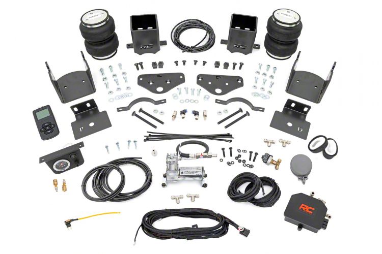 Control. The Rough Country Rear Air Spring Kit gives you more control than usual. The onboard air compressor gives you the ability to easily and quickly change the air pressure in the springs. This ability makes sure that your vehicle's suspension works well with the changing road conditions, adjusting immediately to changes in weight or terrain smoothly.