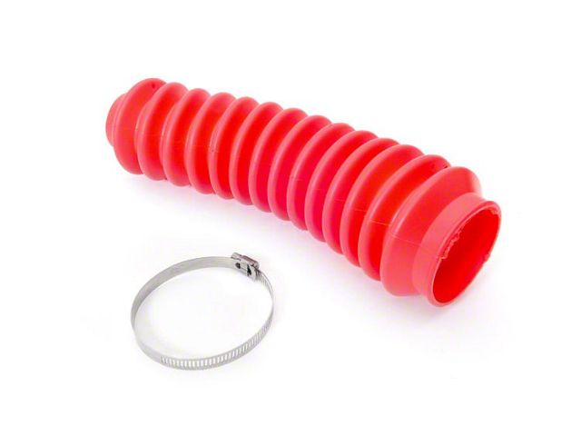 Construction and Appearance. The Rough Country Shock Boot is built to last, utilizing high-quality polyurethane material that stands up to the rigors of off-road and on-road driving. The polyurethane construction not only provides excellent protection for your shock absorbers but also offers flexibility, ensuring a snug and effective fit. The red finish adds a unique and eye-catching touch to your vehicle's appearance, allowing for customization that stands out. Paired with a durable stainless steel boot clamp, this shock boot ensures that style does not come at the expense of functionality and protection.