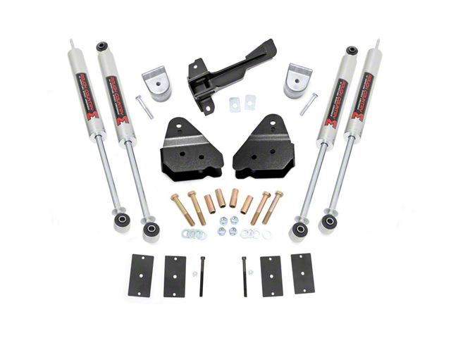 Enhanced Lift Kit for Superior Ground Clearance and Handling. The Rough Country Suspension Lift Kit provides a 3-inch lift to your vehicle, allowing for a maximum tire size of 34 inches while maintaining stock ride quality. It includes M1 Monotube Shocks, radius arm drop brackets, coil spring spacers, and a track bar drop bracket, ensuring balanced performance and improved ground clearance.