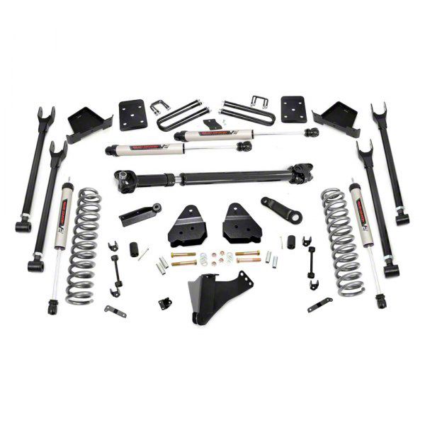 Better Handling. This Rough Country 6-Inch 4-Link Suspension Lift Kit with Front Driveshaft and V2 Monotube Shocks improve handling while adding ground clearance and mean style. The kit accommodates 37-inch tires on your Super Duty.
