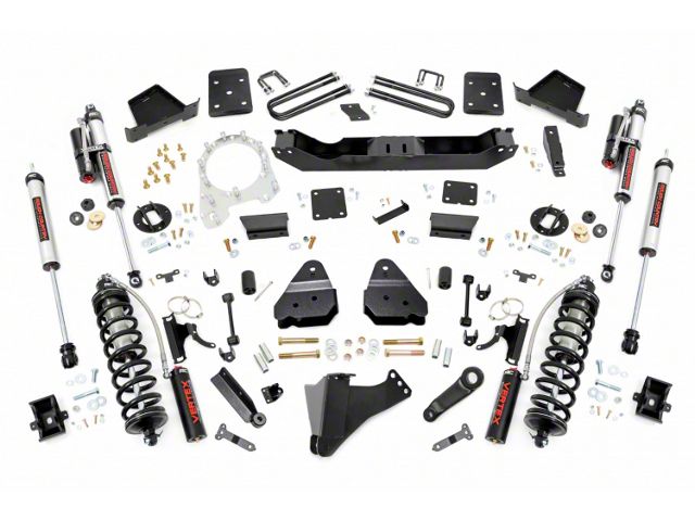 Durable Components. When changing a vehicle's suspension, the key to preserving ride quality is keeping the geometry of all suspension components as close to their factory angles as possible. Rough Country's new 6-inch Suspension Lift features a set of ultra-durable radius arm drop brackets, precision fit to bolt right into the factory mounts for an easier install and a more factory-like angle. Utilizing this conversion kit you're removing the factory independent coil shock and coil set-up and replacing it with a massive 2.5in piston, nitrogen-charged, 8-stage adjustable Vertex Coilover. Rough Country’s Vertex Coilovers feature a monotube design with an external reservoir for increased oil capacity and damping sensitivity. When it comes to investing in a high-end kit, you’ll be pleased to find that Rough Country’s 2.5in piston design is beefier and offers an impressive 56% greater fluid capacity than the average reservoir shock. Each kit is paired with a monotube shock that provides optimal damping control.