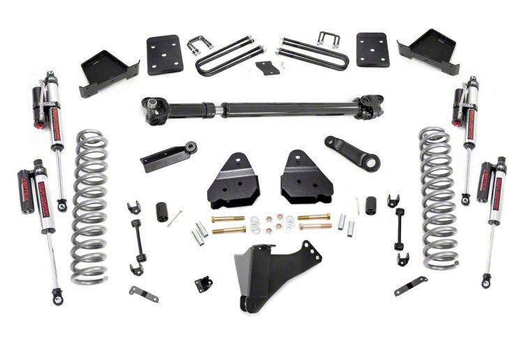 Improved All-Terrain Dynamics. Drive your Super Duty to the rugged terrains with assurance and confidence that it can crawl with optimum stability. This Rough Country 6-Inch Suspension Lift Kit with Vertex Reservoir Shocks and Front Driveshaft is built for the rough off-roaders looking for optimum trail performance with street stability. It comes with a set of Premium N3 Shocks, progressive rate coil springs, CV driveshaft, pitman arm, and track bar brackets.